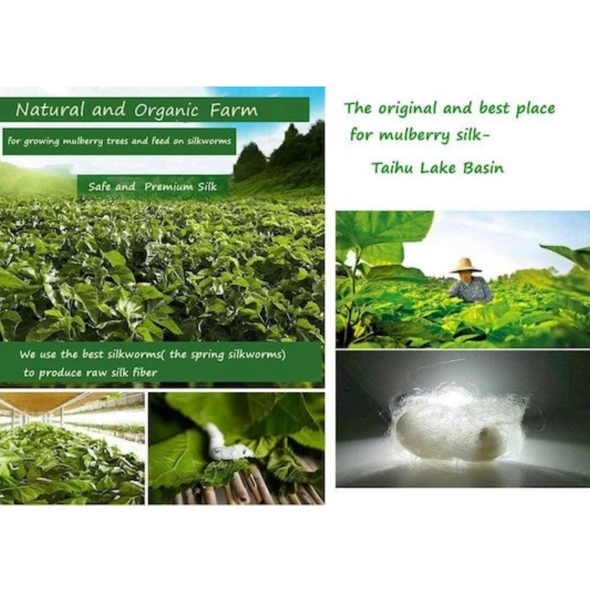 Mulberry silk is a natural fiber that retains moisture, reduces friction, and prevents hair breakage and frizz.